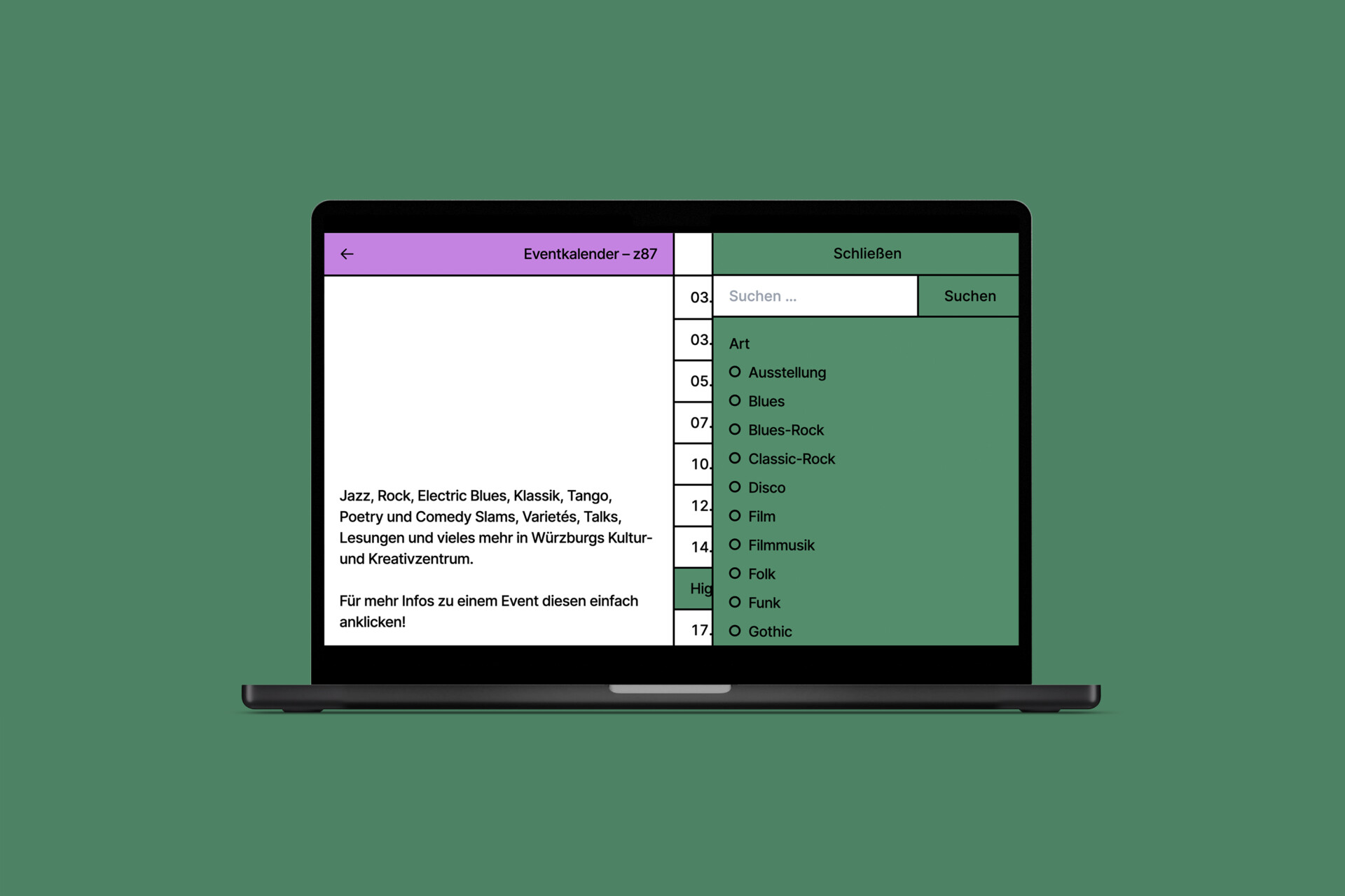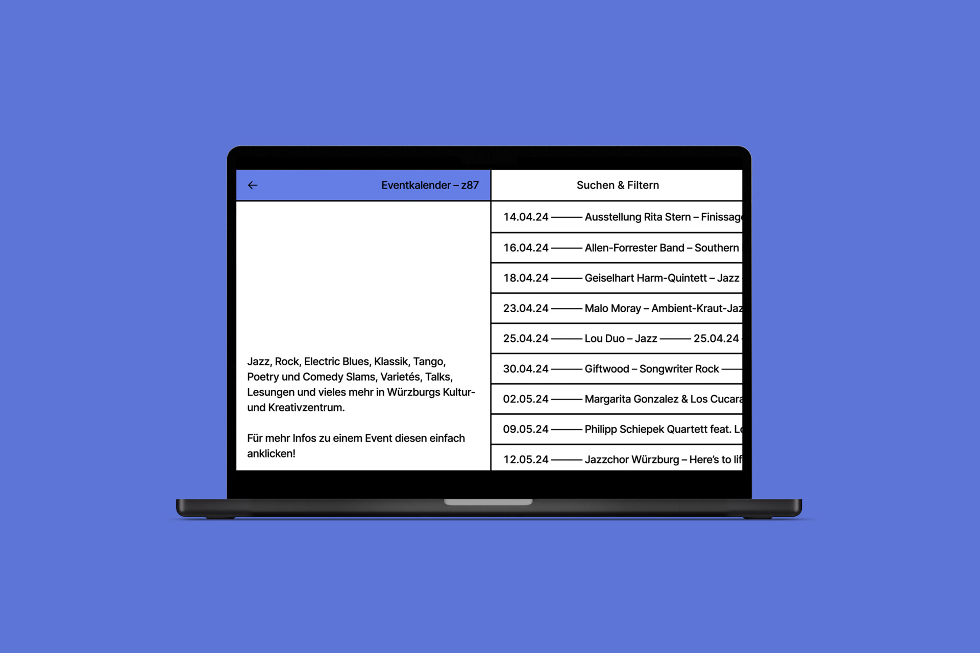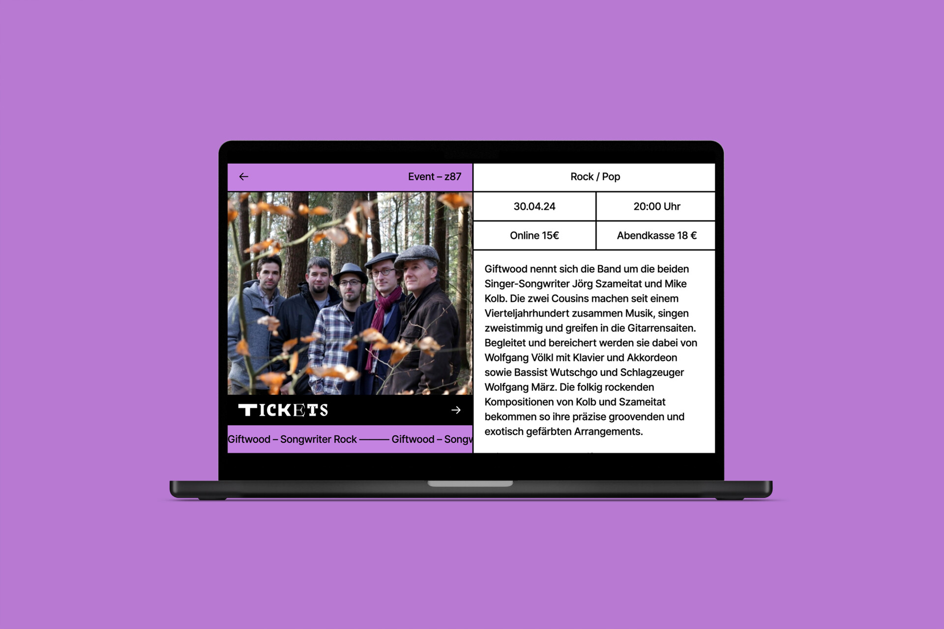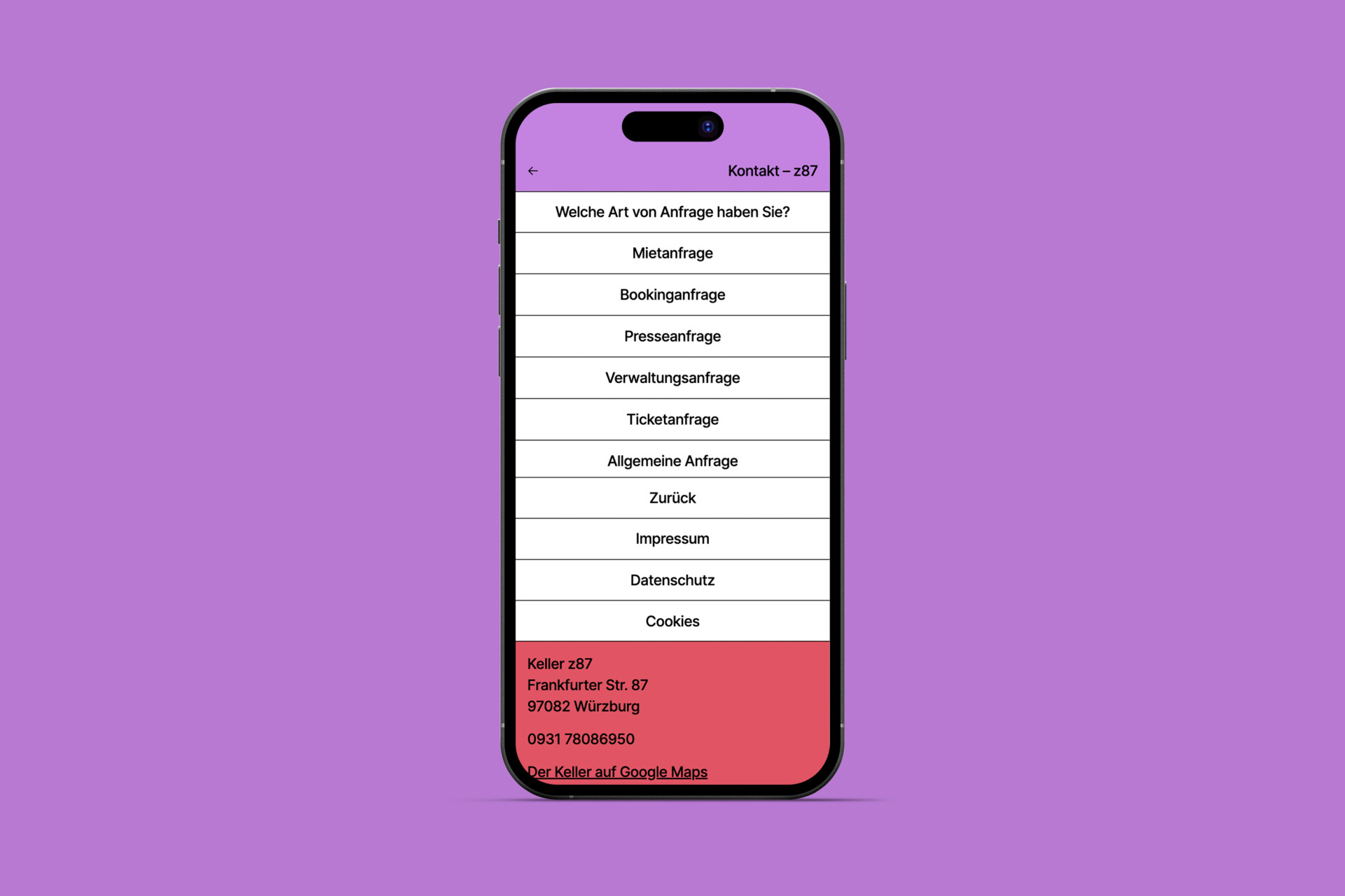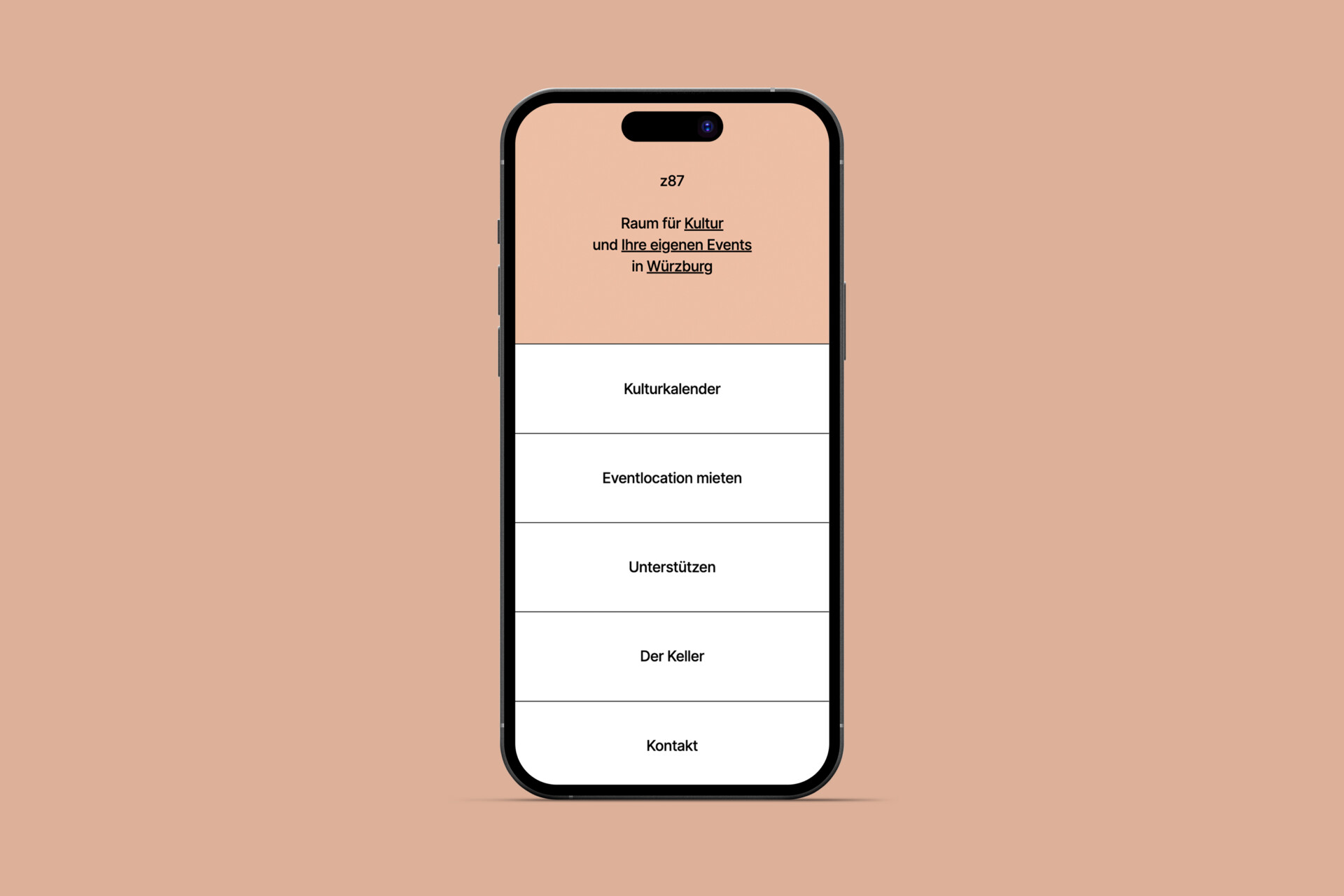Website for the Keller z87 cultural and event venue at Bürgerbräu Würzburg.
