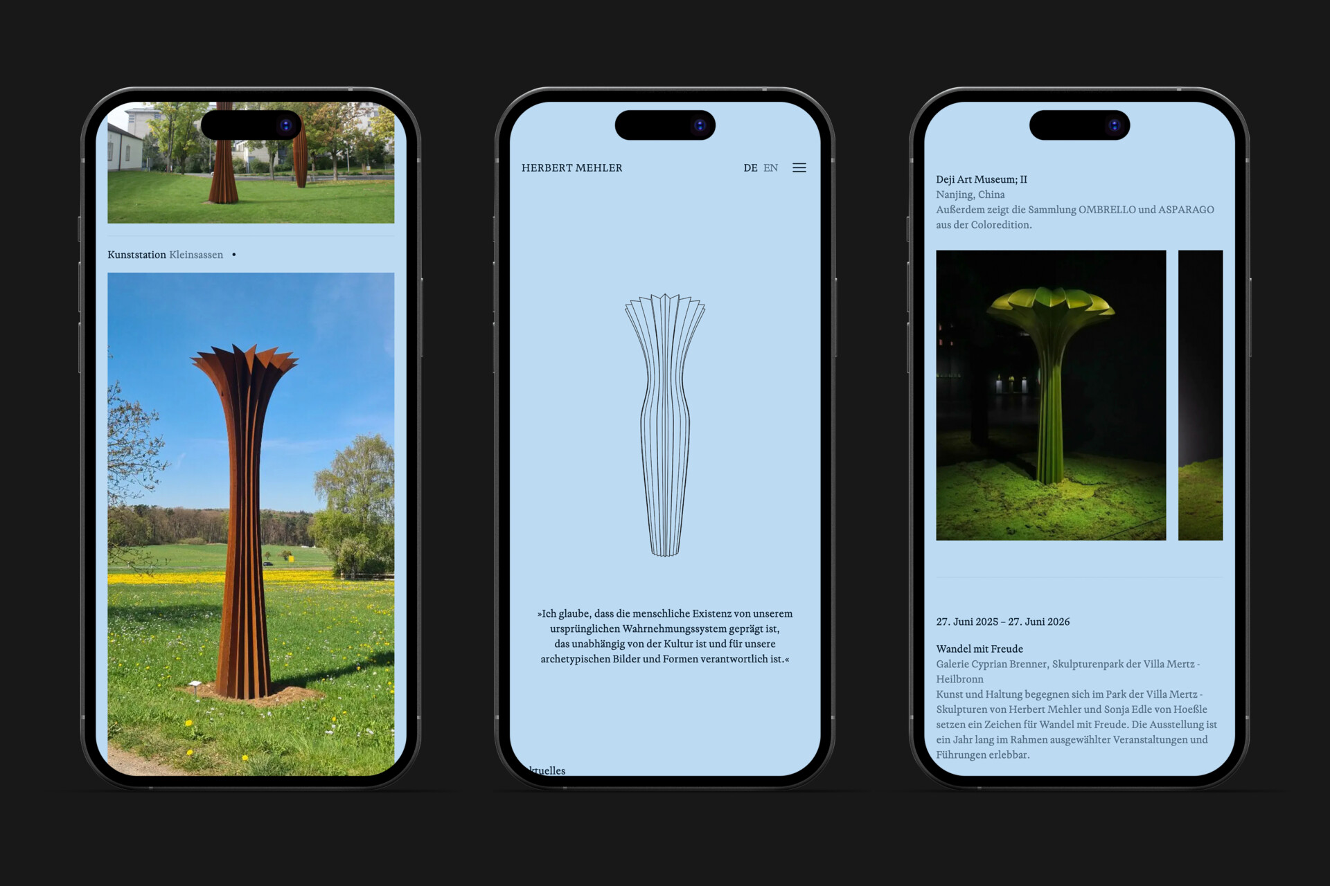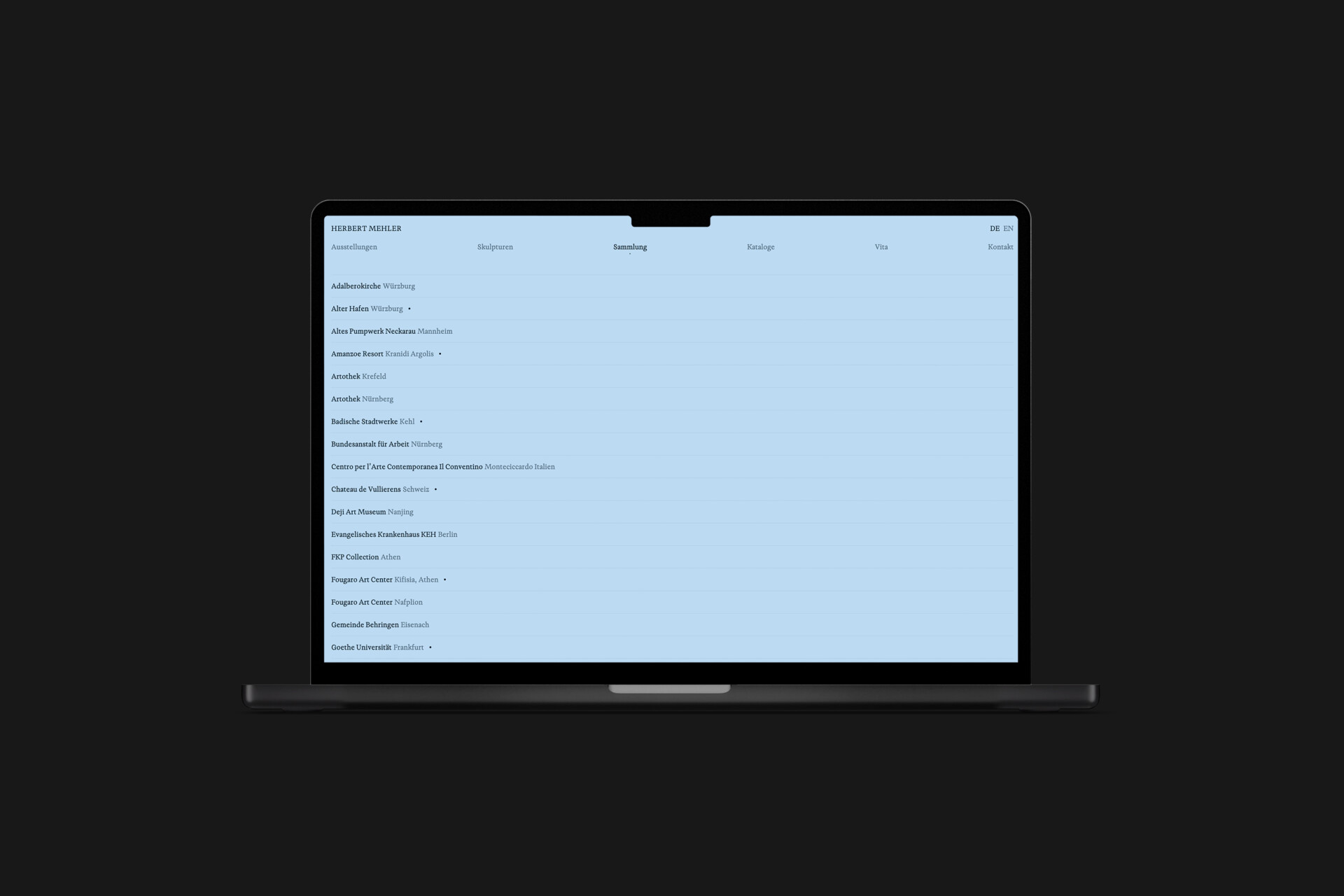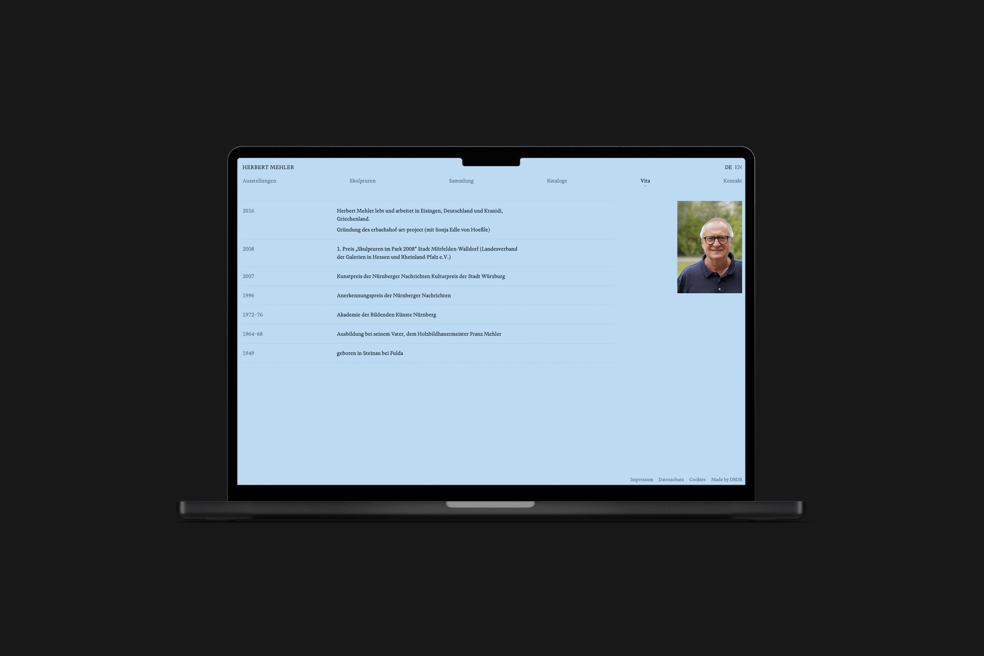 Website für den Künstler Herbert Mehler. Mit ausgewählten Werken, Ausstellungen, Katalogen und Sammlungen. In deutscher und englischer Sprache.